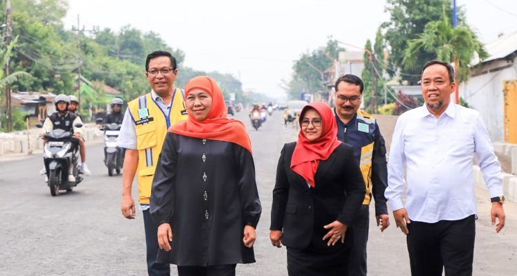 Gubernur Jawa Timur Khofifah Indar Parawansa meninjau langsung progres proyek pelebaran jalan Maospati – Bts. Magetan, tepatnya di Desa Sugihwaras, Ke