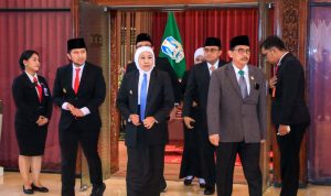 Gubernur Jawa Timur Khofifah Indar Parawansa setelah landing malam ini di Surabaya usai misi dagang di Kendari Sulawesi Tenggara hari ini, langsung me