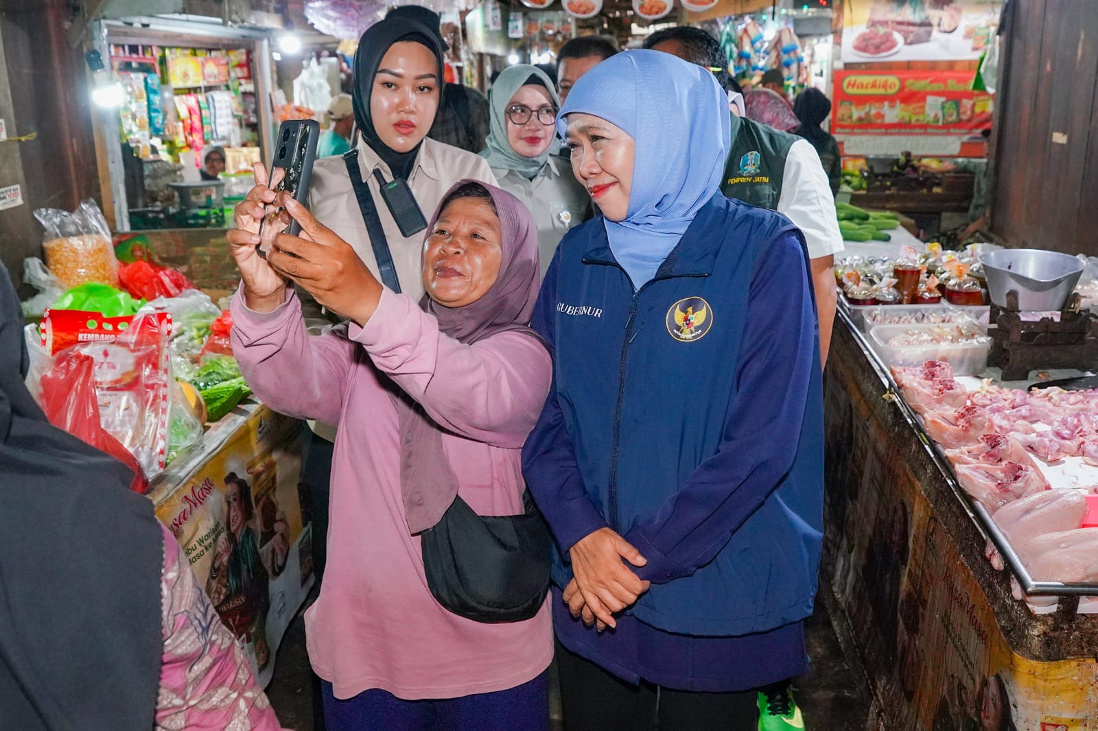 SIDOARJO, 19 FEBRUARI 2026 – Gubernur Jawa Timur Khofifah Indar Parawansa meninjau harga dan ketersediaan kebutuhan pokok di Pasar Laranga
