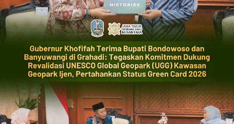 Gubernur Khofifah Soroti Dampak Strategis Geopark Ijen, Dukung Penuh Revalidasi UNESCO Tahun 2026 Sosial & Budaya|Tayang: 15 April 2026 | 14:30 WIBoleh Weibisono Jahurie Pemprov Jatim Siapkan Geopark Ijen Pertahankan Status Green Card 2026 SURABAYA, 15