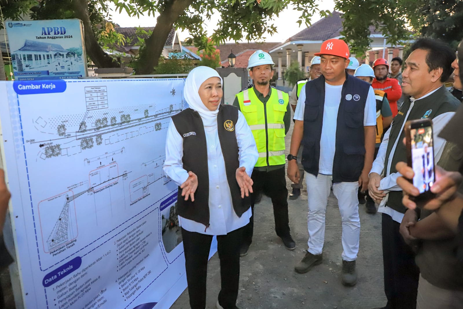 Didampingi Bupati Situbondo Yusuf Rio Wahyu Prayogo dan Kepala Dinas PU Bina Marga Jawa Timur, Edy Tambeng Widjaja, Gubernur Khofifah menyusuri sekaligus melihat kondisi jalan yang tengah dalam proses pelebaran.