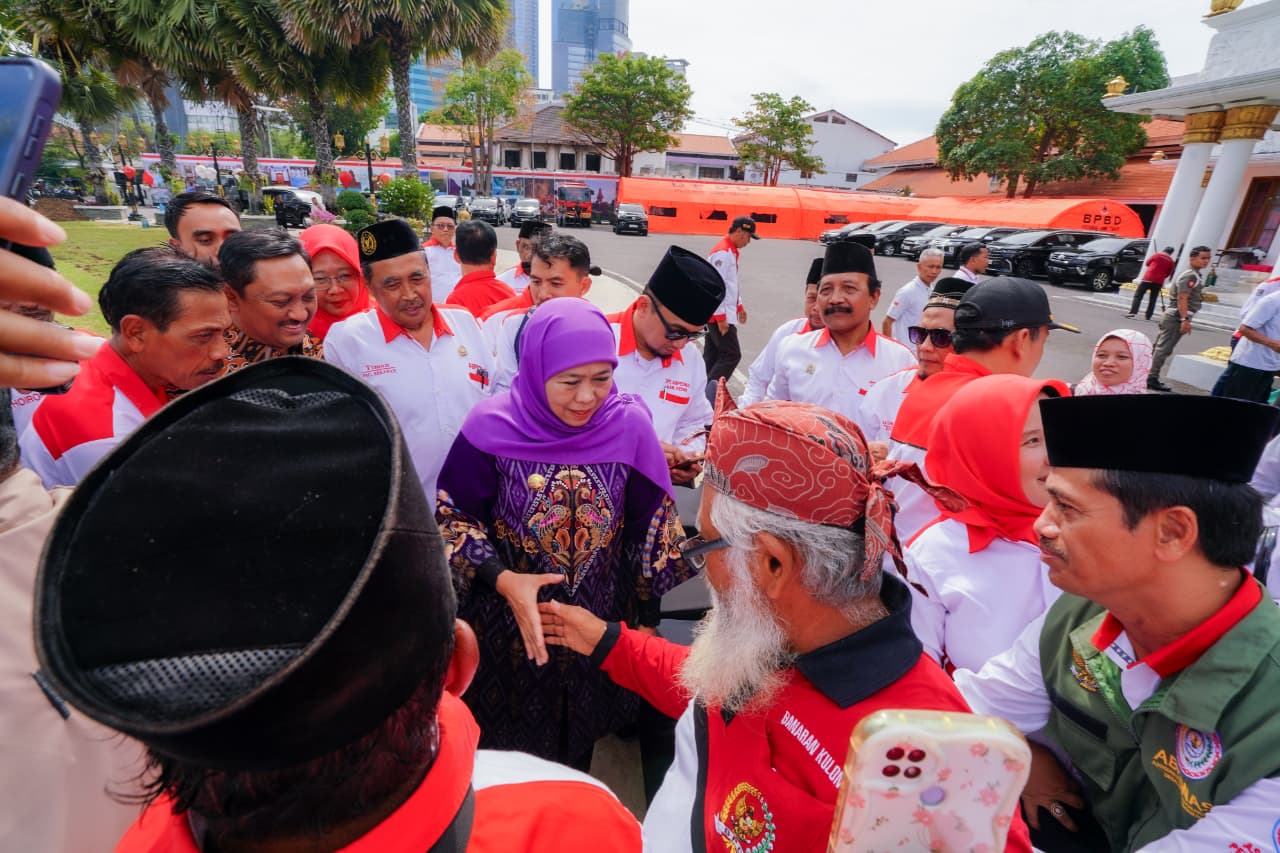 Gubernur Jawa Timur Khofifah Indar Parawansa menerima kunjungan 112 pengurus Asosiasi Badan Permusyawaratan Desa Nasional (ABPEDNAS) dari 20 Dewan Pimpinan Cabang (DPC) se-Jawa Timur di Halaman Gedung Negara Grahadi, Surabaya, Selasa (9/9).