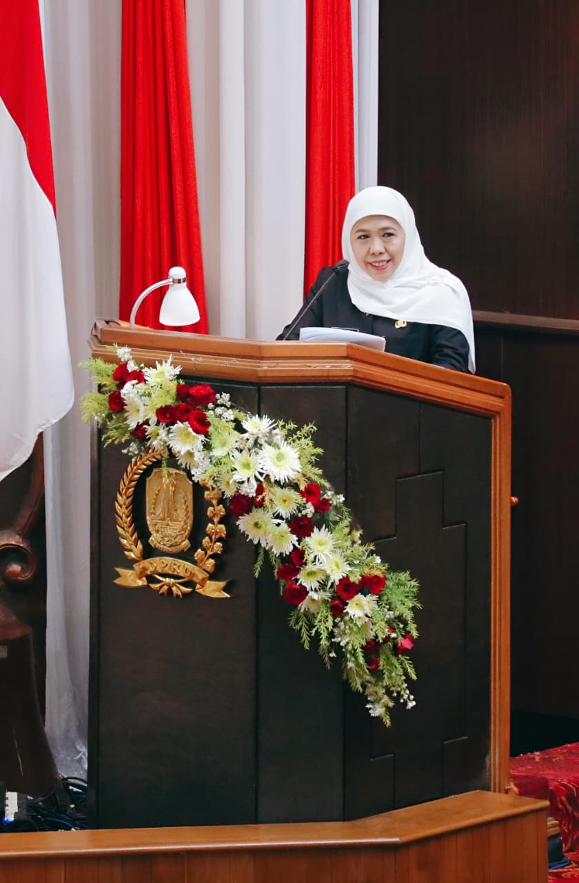 Pernyataan ini disampaikan Gubernur Khofifah dalam Rapat Paripurna Istimewa DPRD Provinsi Jawa Timur, dalam rangka memperingati Hari Jadi ke-80 Provinsi Jawa Timur, yang digelar di Gedung DPRD Jatim, Surabaya, Minggu (12/10).