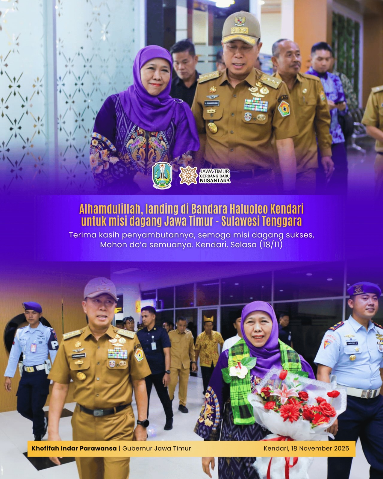 “Sebagai Gerbang Baru Nusantara, Jatim terus berkomitmen memperkuat konektivitas dari barat ke timur. Sulawesi Tenggara memiliki posisi strategis dan kami ingin memastikan alur distribusi, perdagangan, dan peluang investasinya semakin terhubung dengan Jawa Timur,” katanya.
