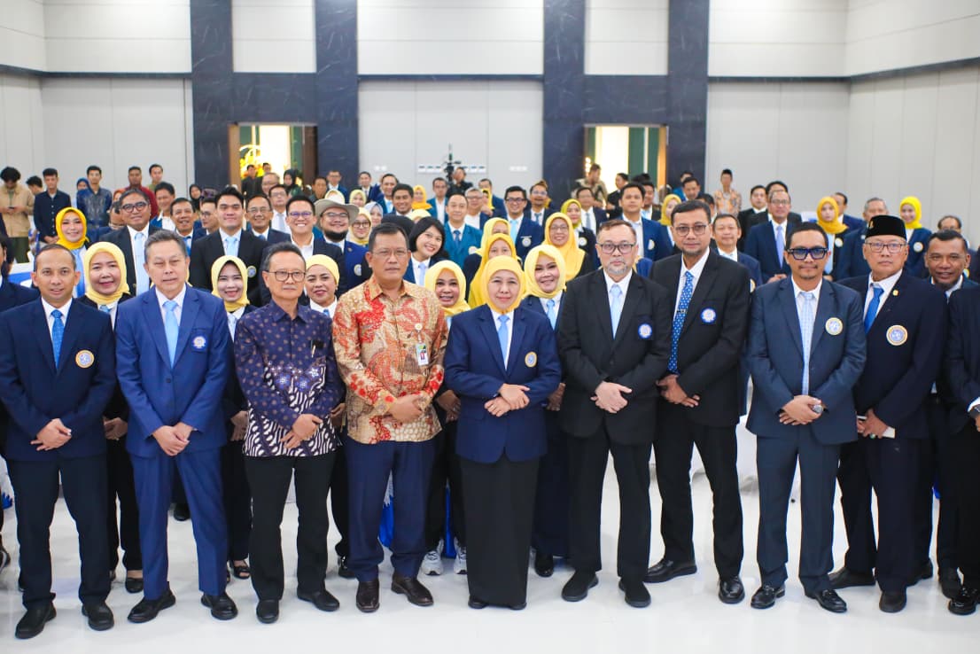 SURABAYA, 20 DESEMBER 2025 – Ketua Umum Ikatan Alumni Universitas Airlangga (IKA UNAIR) yang sekaligus Gubernur Jawa Timur Khofifah Indar Parawansa secara resmi melantik Pengurus Pusat IKA UNAIR Masa Bakti 2025–2030 dalam prosesi yang digelar di Plaza Universitas Airlangga (UNAIR) Surabaya, Jumat (19/12).