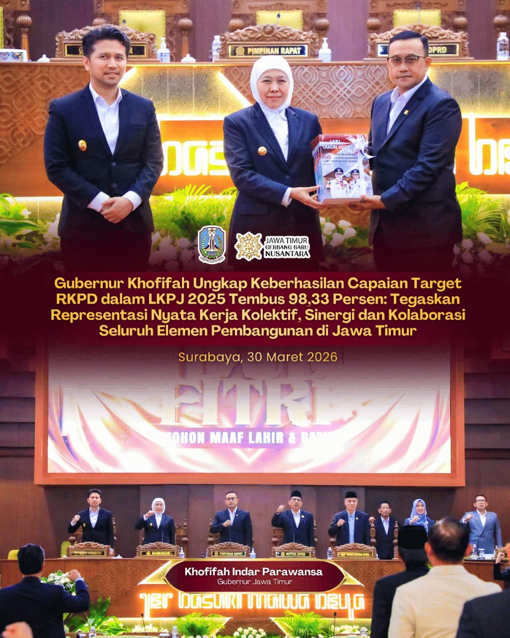 Penyampaian ini merupakan bentuk akuntabilitas penyelenggaraan pemerintahan daerah sekaligus refleksi atas capaian pembangunan Jawa Timur sepanjang tahun 2025.