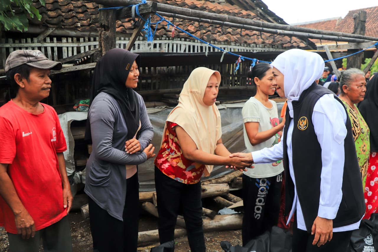 Gubernur Jawa Timur Khofifah Indar Parawansa meninjau dua unit rumah warga di Desa Pace Kulon, Nganjuk (23/10) yang telah selesai direnovasi melalui program Rumah Tinggal Layak Huni (Rutilahu) hasil kolaborasi Pemprov Jatim dan Kodam V/Brawijaya.
