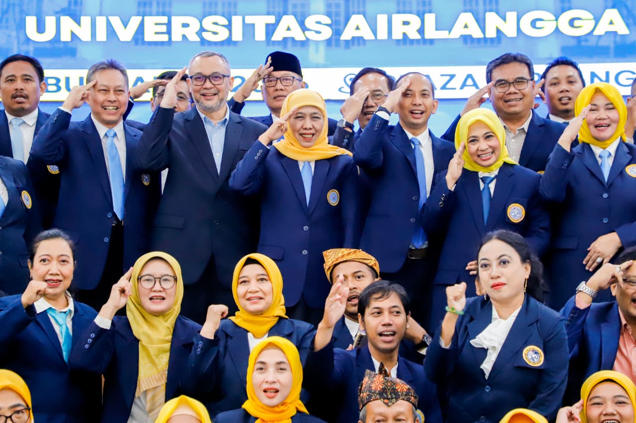 SURABAYA, 9 APRIL 2026 – Ketua Umum PP IKA Universitas Airlangga (UNAIR) yang juga Gubernur Jawa Timur melantik Pengurus Wilayah, Komisariat, dan Pengurus Cabang IKA UNAIR periode 2025–2030 di Plaza Airlangga Surabaya, Rabu (8/4) malam, sekaligus mendorong peran strategis alumni dalam menyatukan keilmuan dan pengabdian profesional guna mempercepat pembangunan di berbagai sektor.
