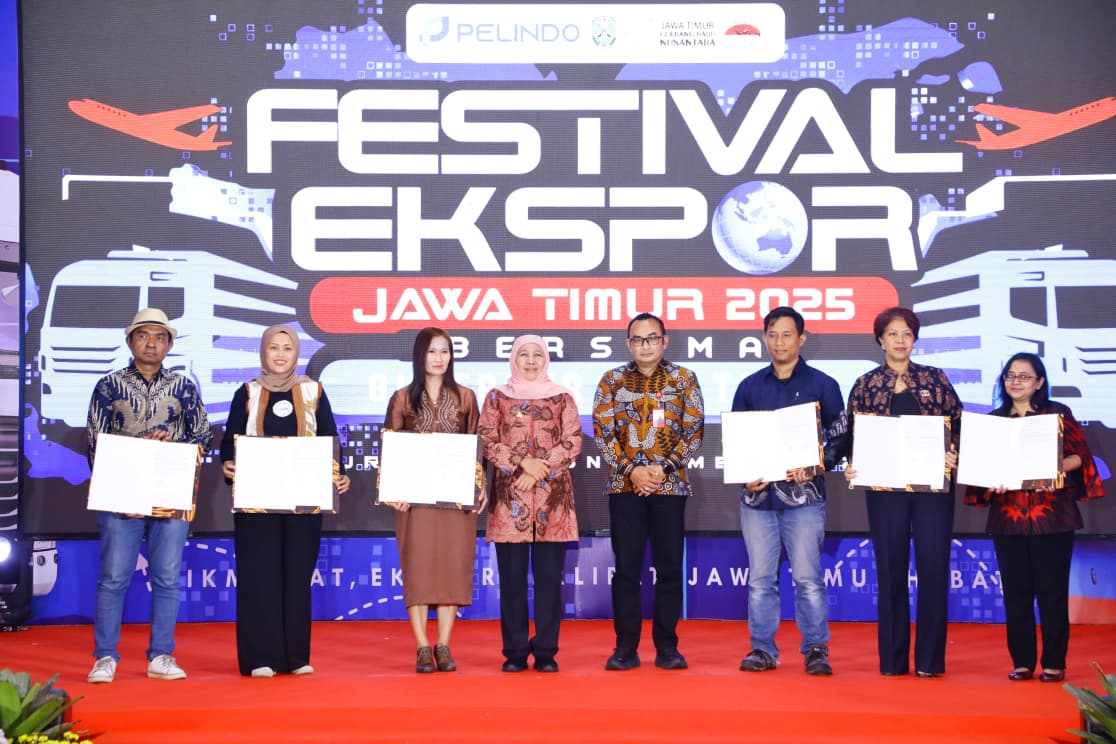 Gubernur Jawa Timur Khofifah Indar Parawansa melepas enam truk produk ekspor Industri Kecil Menengah (IKM) Desa Devisa Jawa Timur dengan nilai total USD351,6 ribu atau setara Rp5,8 miliar. Pelepasan dilakukan dalam gelaran Festival Ekspor Jawa Timur 2025 yang berlangsung di PT Terminal Petikemas Surabaya (TPS), Rabu (26/11).