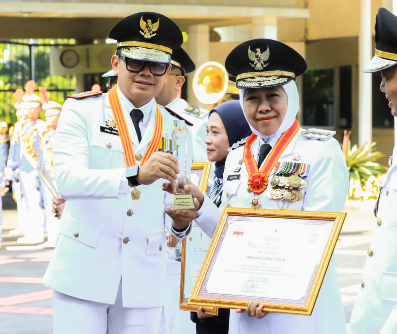 JAKARTA, 27 APRIL 2026 – Gubernur Jawa Timur Khofifah Indar Parawansa menerima penghargaan atas Prestasi Penyelenggaraan Pemerintah Daerah dengan skor 3,4695 dan status kinerja tinggi dari Menteri Dalam Negeri (Mendagri) dalam Peringatan Hari Otonomi Daerah XXX Tahun 2026 di Kantor Kementerian Dalam Negeri RI (Kemendagri), Jakarta, Senin (27/4).