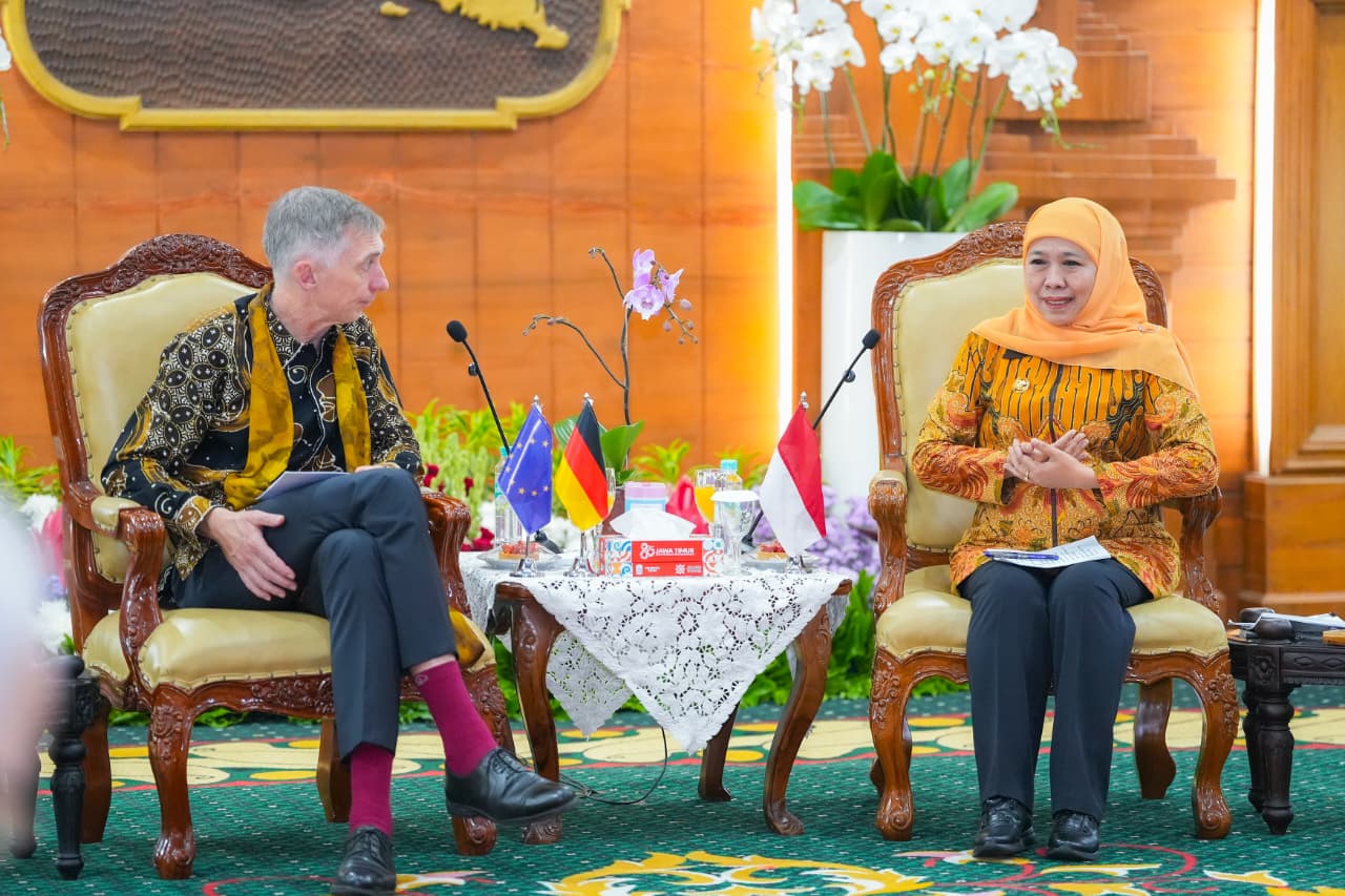 SURABAYA, 9 JANUARI 2025 – Gubernur Jawa Timur Khofifah Indar Parawansa menerima kunjungan Duta Besar Jerman untuk Indonesia H.E. Mr. Ralf Beste di Gedung Negara Grahadi Surabaya, Jumat (9/1).