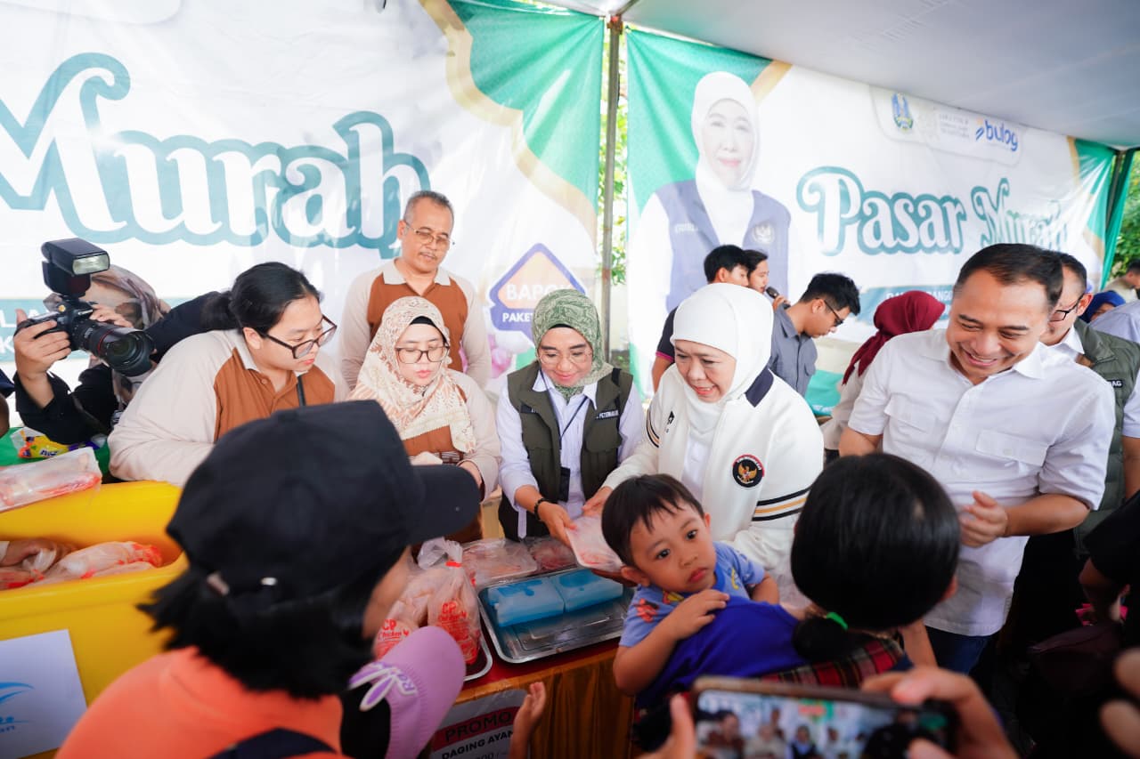 Gubernur Jatim Khofifah Indar Parawansa menegaskan komitmen Pemprov Jatim menggelar pasar murah. Ia ingin sembako murah bisa diakses seluruh warga termasuk di wilayah perbatasan.