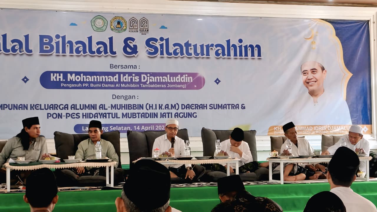 LAMPUNG SELATAN, 14 APRIL 2026 – Himpunan Keluarga Alumni Al-Muhibbin (HIKAM) wilayah Sumatra menggelar Halal Bihalal bersama Pengasuh Bumi Damai Al-Muhibbin Pondok Pesantren Bahrul Ulum Tambakberas Jombang di Pondok Pesantren Hidayatul Mubtadiin, Jati Agung, Lampung Selatan, Selasa (14/4) siang. Kegiatan ini dihadiri ratusan alumni, wali santri, serta masyarakat umum, khususnya dari wilayah Provinsi Lampung.