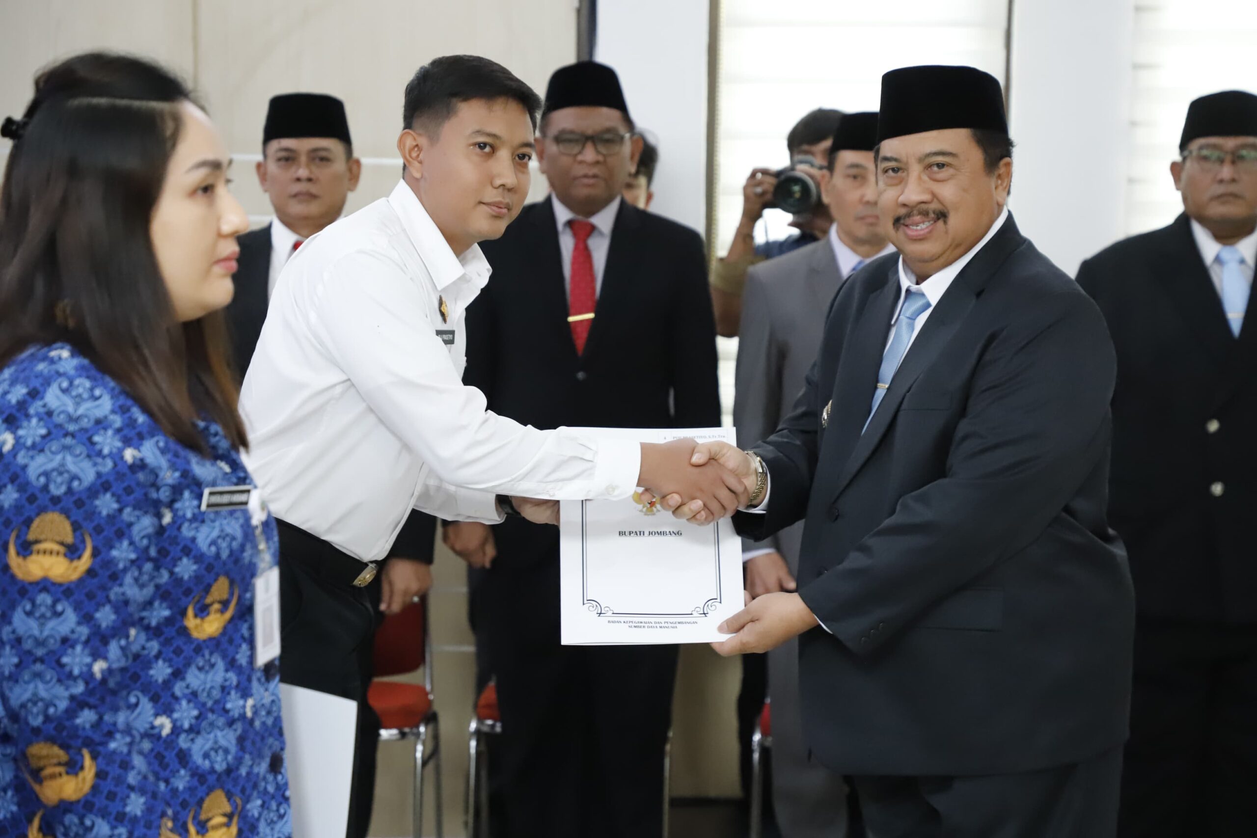Jombang – Bupati Jombang Warsubi menyerahkan Surat Keputusan (SK) pengangkatan Calon Pegawai Negeri Sipil (CPNS) sekaligus mengambil sumpah jabatan bagi 23 Pegawai Negeri Sipil (PNS) di lingkungan Pemerintah Kabupaten Jombang. Kegiatan tersebut berlangsung di Pendopo Kabupaten Jombang.