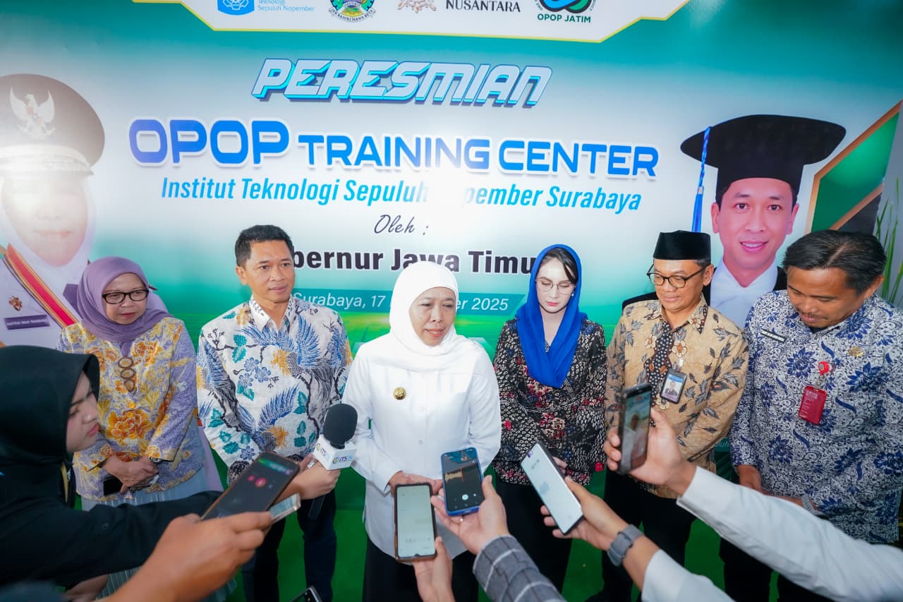 SURABAYA, 20 DESEMBER 2025 – Gubernur Jawa Timur Khofifah Indar Parawansa meresmikan OPOP Training Center (OTC) di Institut Teknologi Sepuluh Nopember (ITS) Surabaya, Rabu (17/12). Peresmian ini menjadi tonggak penting penguatan ekosistem pengembangan ekonomi pesantren berbasis inovasi dan teknologi di Jawa Timur.
