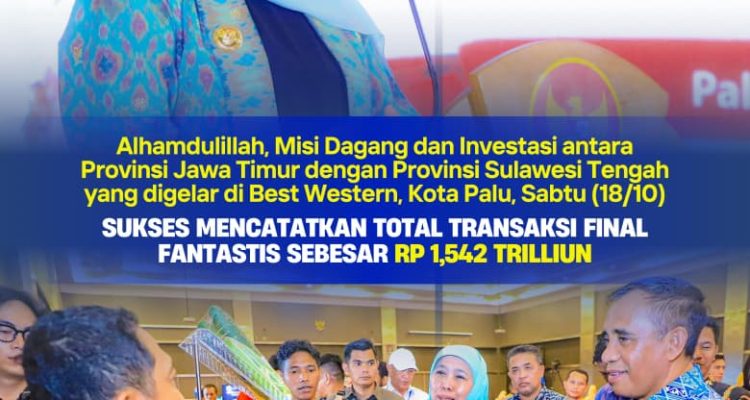 Alhamdulillah, Meningkat 14 Kali Lipat Lebih Dibanding Misi Dagang Jatim-Sulteng Tahun 2022Gubernur Jawa Timur Khofifah Indar Parawansa kembali mencat