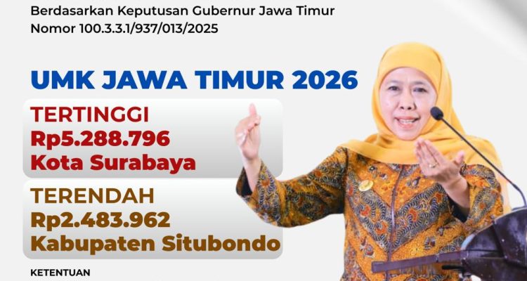 *SURABAYA, 25 DESEMBER 2025* – Gubernur Jawa Timur Khofifah Indar Parawansa resmi menetapkan Upah Minimum Kabupaten/Kota (UMK) di Jawa Timur Tah