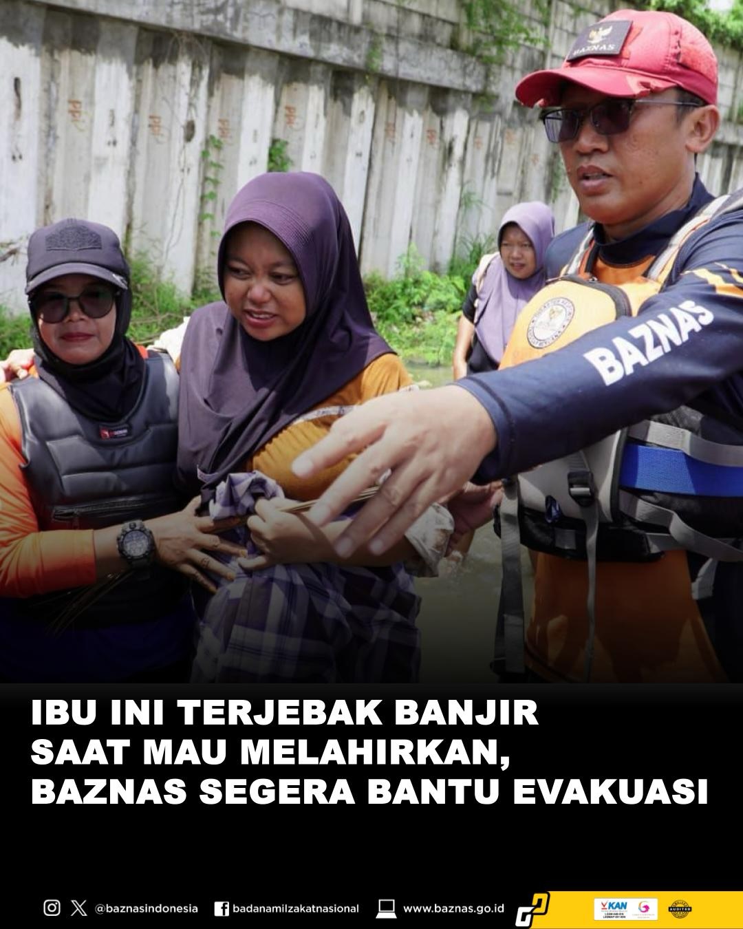 Badan Amil Zakat Nasional (BAZNAS) RI berhasil melakukan evakuasi terhadap seorang ibu hamil yang hendak melahirkan dan terjebak banjir di wilayah Karawang, Jawa Barat. Evakuasi tersebut dilakukan sebagai bentuk respons cepat BAZNAS dalam memberikan bantuan kemanusiaan kepada masyarakat terdampak bencana.