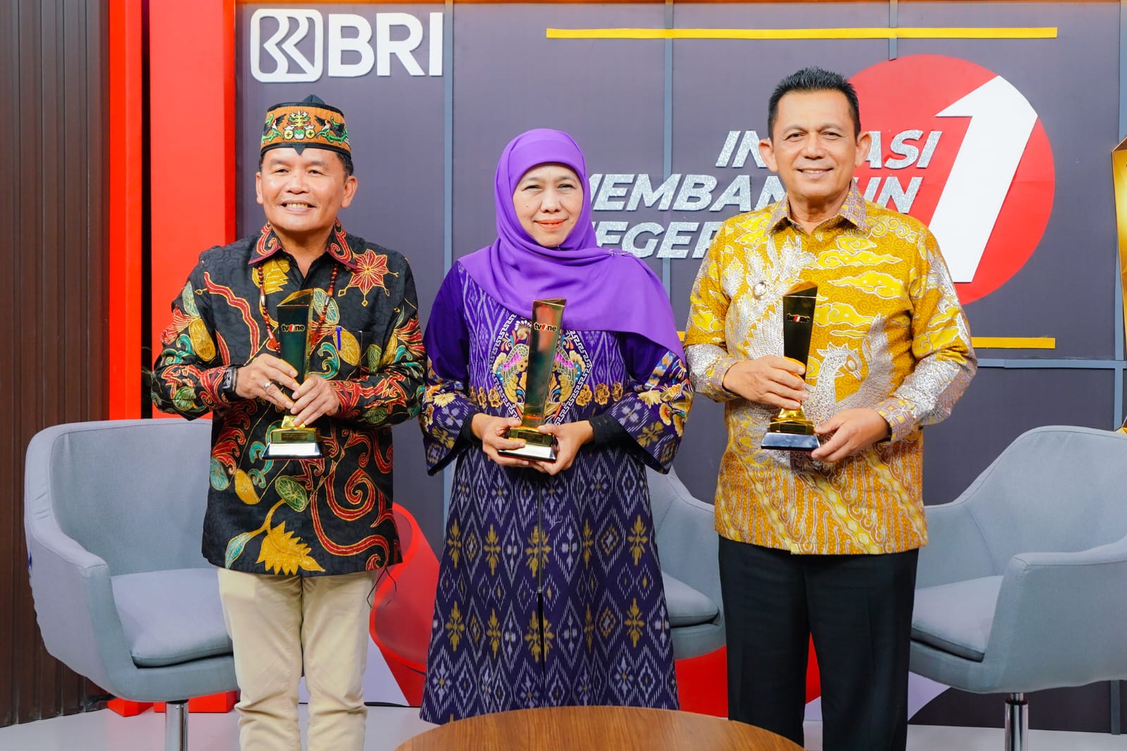 Penghargaan diserahkan langsung oleh Wakil Menteri Koperasi Farida Farichah kepada Gubernur Khofifah dalam ajang Inovasi Membangun Negeri 2025 TV One yang diselenggarakan di Studio TV One, Jakarta, Jumat (7/11) malam.